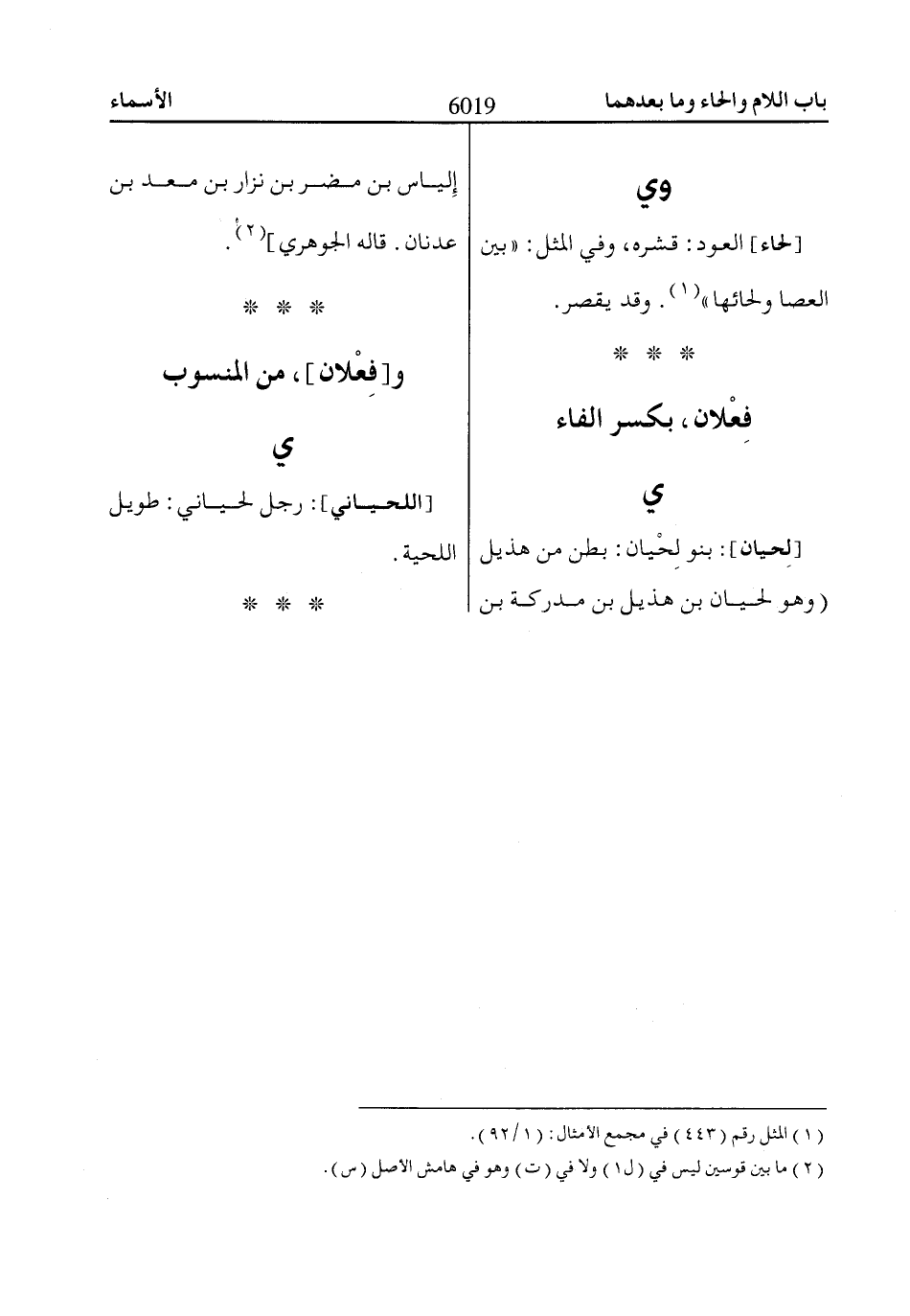 [لِحيان]: بنو لِحْيان: بطن من هذيل (وهو لحيان بن هذيل بن مدركة بن إِلياس بن مضر بن نزار بن معد بن عدنان. قاله الجوهري] «2».