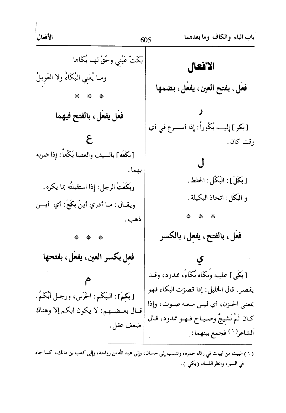 (1) البيت من أبيات في رثاء حمزة، وتنسب إِلى حسان، وإِلى عبد اللّاه بن رواحة، وإِلى كعب بن مالك، كما جاء في السير، وانظر اللسان (بكي).