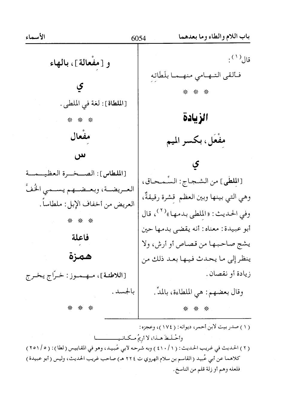(2) الحديث في غريب الحديث: (1/ 410) وبه شرحه لأبي عَبيد، وهو في المقاييس (لطا): (5/ 251) كلاهما عن أبي عُبيد (القاسم بن سلام الهروي ت 224 هـ) صاحب غريب الحديث، وليس (أبو عبيدة) فلعله وهم أو زلة قلم من الناسخ.