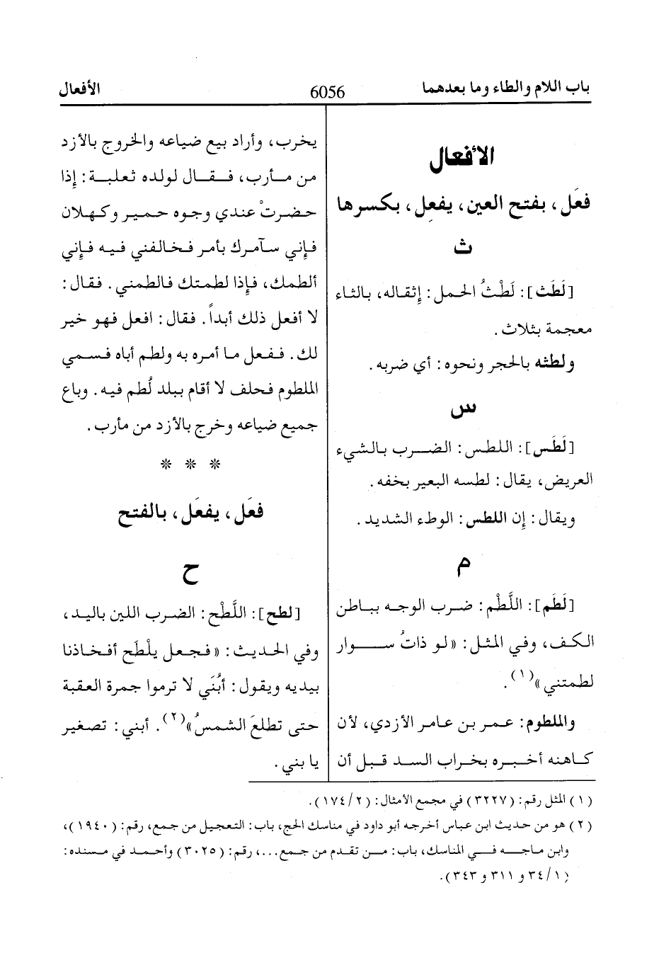 وفي الحديث: «فجعل يلْطَح أفخاذنا بيديه ويقول: أبُنَي لا ترموا جمرة العقبة حتى تطلعَ الشمسُ» «2»