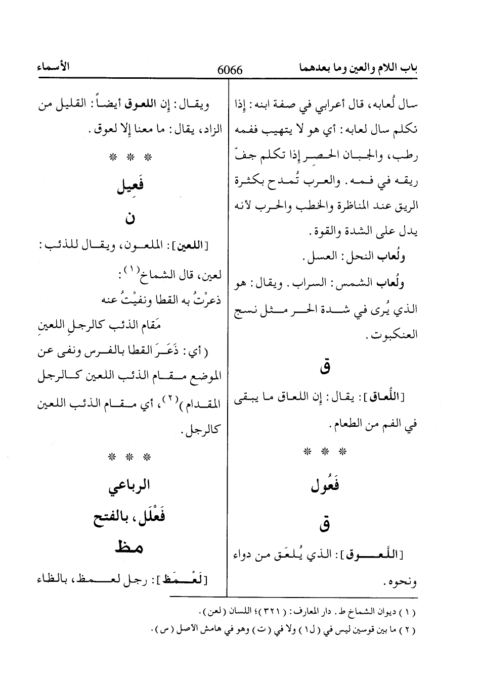 (1) ديوان الشماخ ط. دار المعارف: (321)؛ اللسان (لعن).