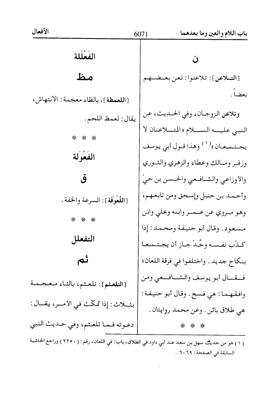 (1) هو من حديث سهل بن سعد عند أبي داود في الطلاق، باب: في اللعان، رقم: (2250) وراجع الحاشية السابقة في الصفحة: 6069.