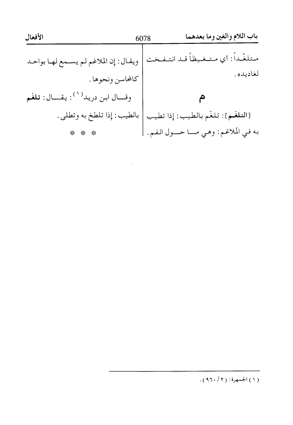 وقال ابن دريد «1»: يقال: تلغّم بالطيب: إِذا تلطخ به وتطلى.