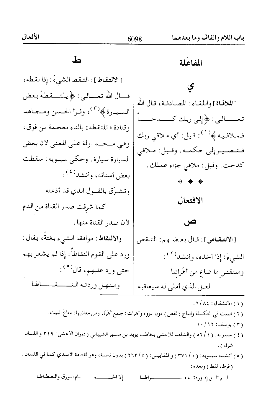 [الالتقاص]: قال بعضهم: التقص الشيءَ: إِذا أخذه، وأنشد «2»: