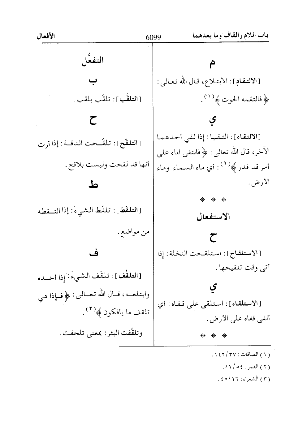 [التلقُّف]: تلقّف الشيءَ: إِذا أخذه وابتلعه، قال اللّاه تعالى: فإذا هي تَلَقَّفُ ما يأفكون «3».