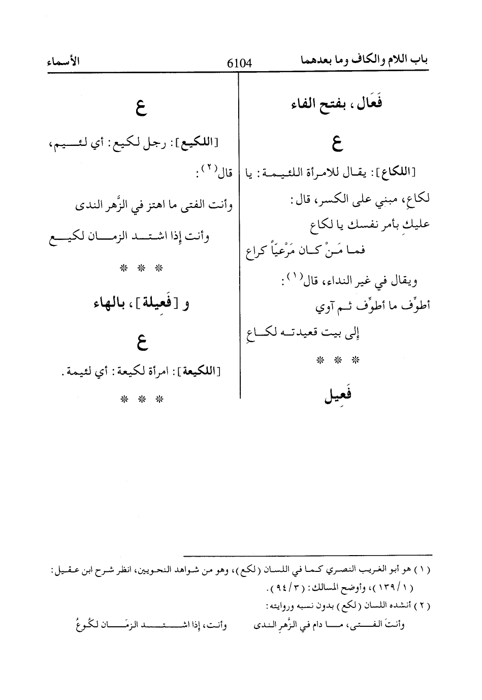 [اللكيع]: رجل لكيع: أي لئيم، قال «2»: