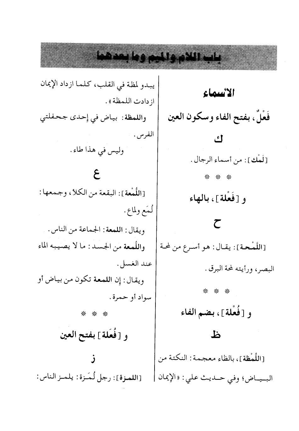 [اللُّمْعة]: البقعة من الكلأ، وجمعها: