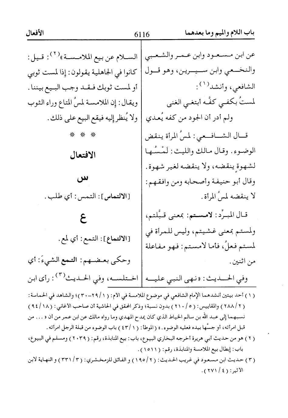 (1) أحد بيتين أنشدهما الإِمام الشافعي في موضوع الملامسة في الأم: (1/ 29 - 30)؛ والشاهد في الحماسة:
