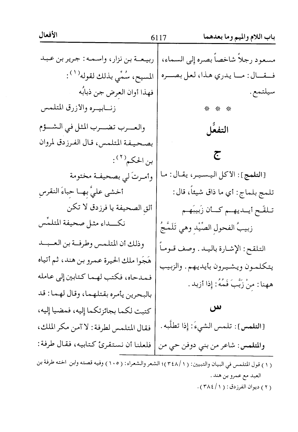 [التلمج]: الأكل اليسير، يقال: ما تلمج بلماج: أي ما ذاق شيئاً، قال: