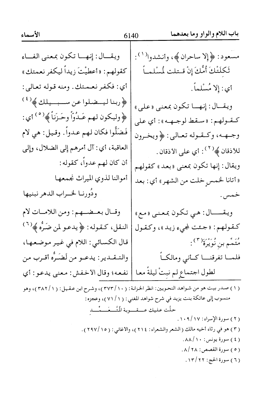وقال بعضهم: ومن اللامات لام النقل، كقوله: يَدْعُوا لَمَنْ ضَرُّهُ «6» قال الكسائي: اللام في غير موضعها، والتقدير: يدعو من لَضَرُّه أقرب من نفعه؛ وقال الأخفش: معنى يَدْعُوا: أي