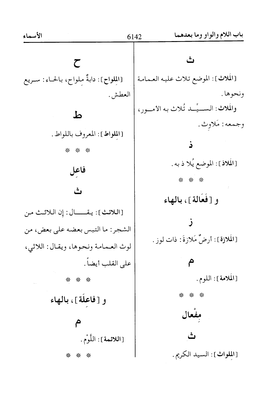 والمَلاث: السيِّد تُلاث به الأمور، وجمعه: مَلاوِث.
