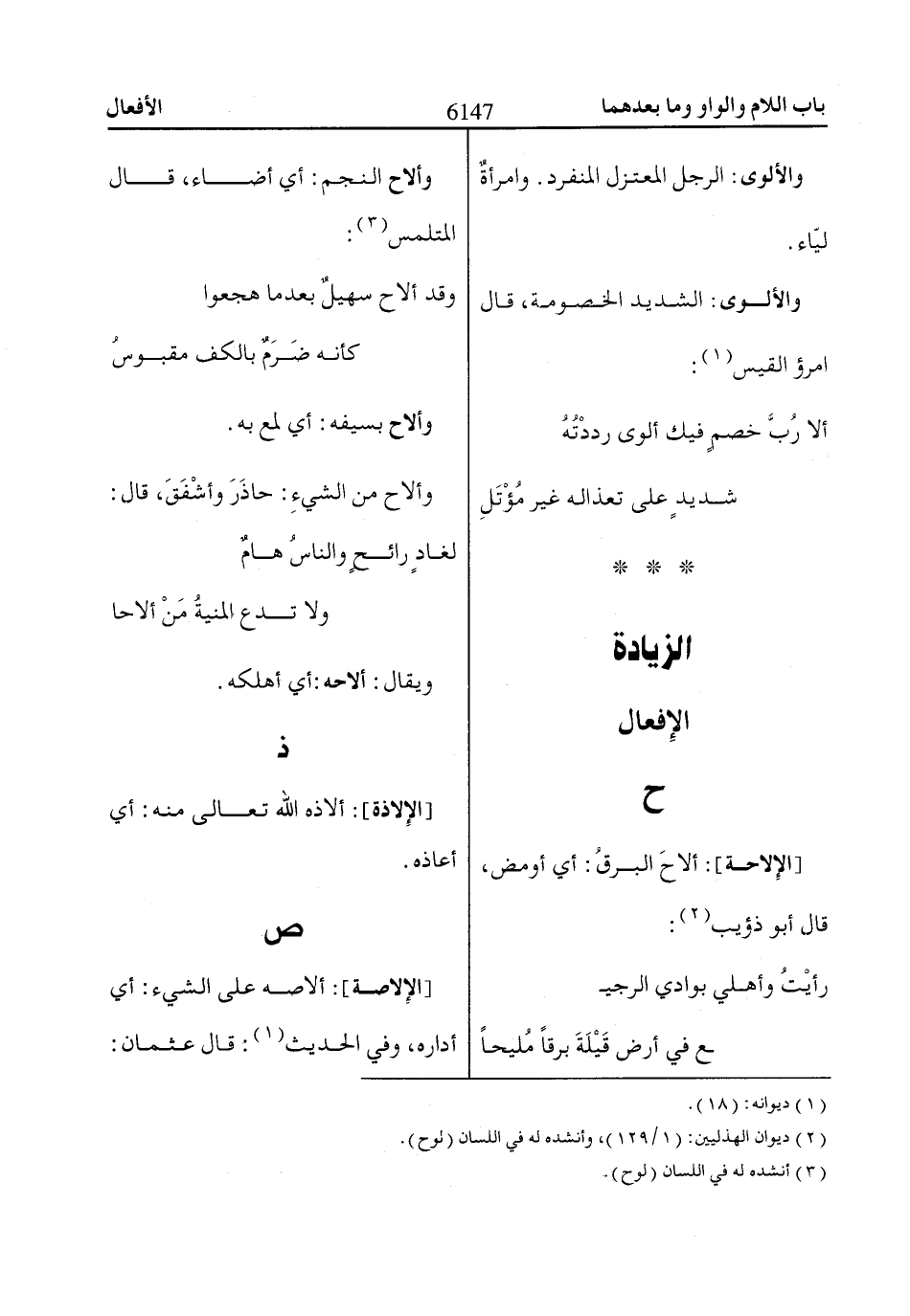 [الإِلاحة]: ألاحَ البرقُ: أي أومض، قال أبو ذؤيب «2»: