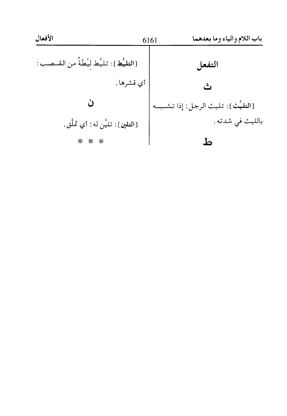 [التليُّث]: تليث الرجل: إِذا تشبه بالليث في شدته.