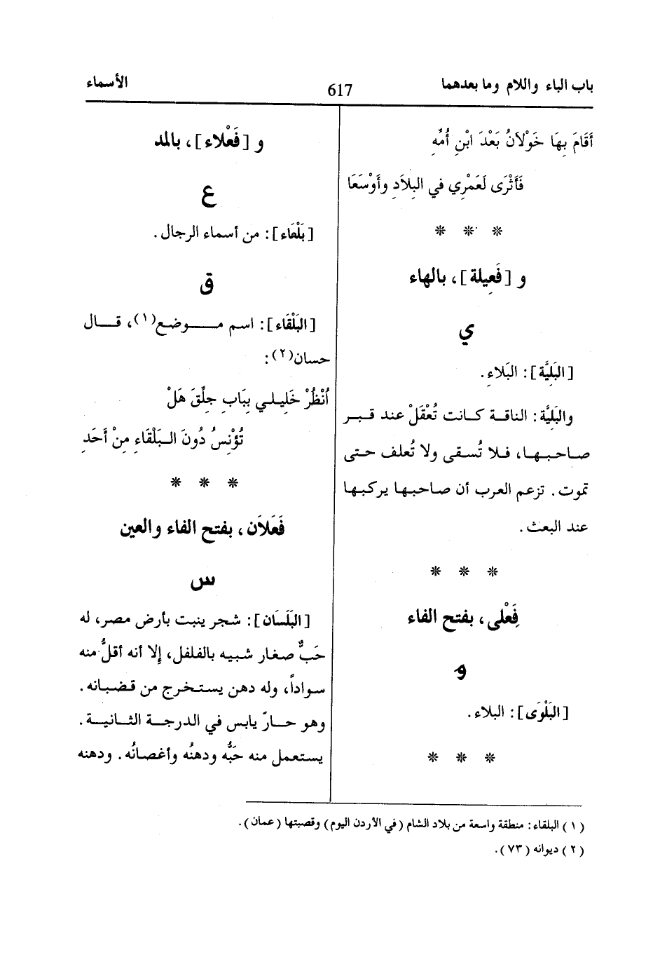 (1) البلقاء: منطقة واسعة من بلاد الشام (في الأردن اليوم) وقصبتها (عمان).