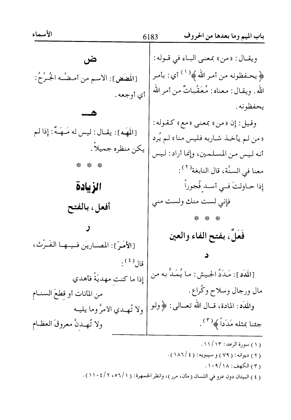 والمَدَد: المادة، قال اللّاه تعالى: وَلَوْ جِئْناا بِمِثْلِهِ مَدَداً «3».