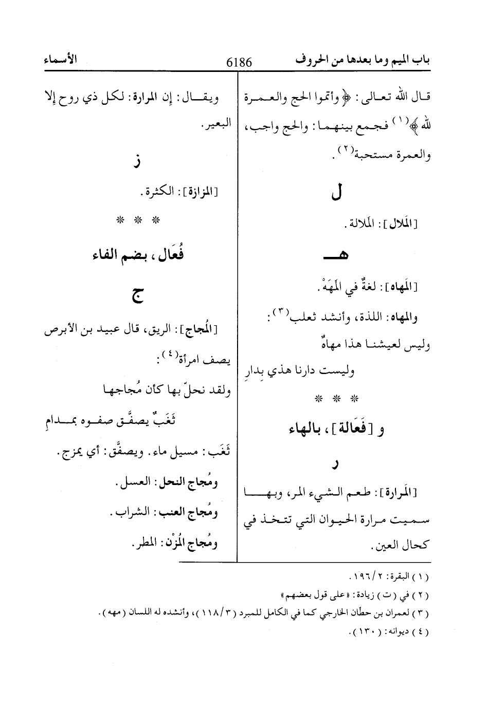 [المُجاج]: الريق، قال عبيد بن الأبرص يصف امرأة «4»: