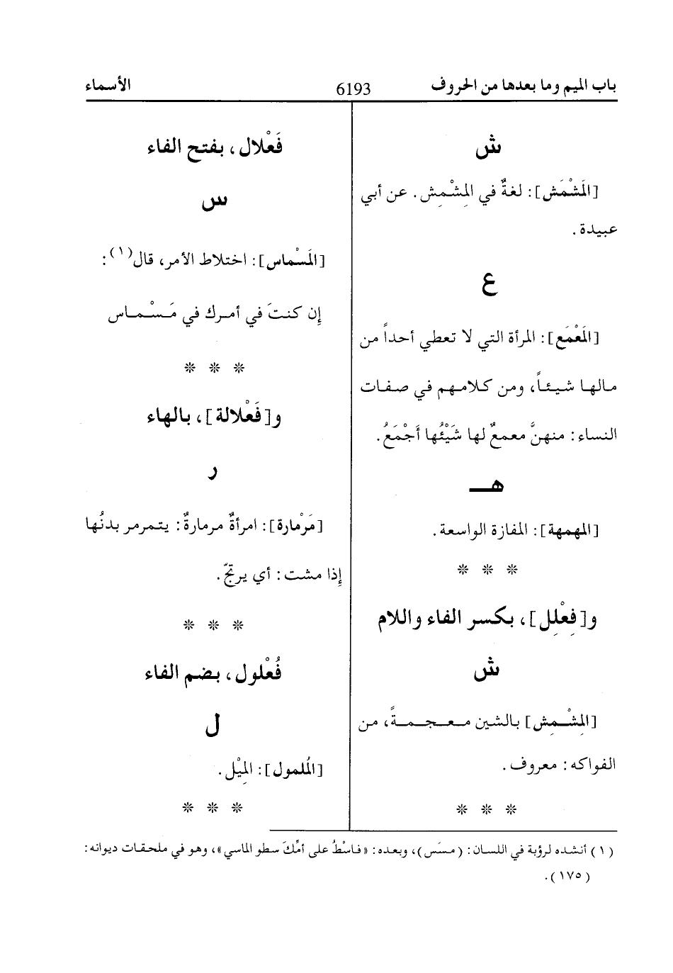 [المَسْماس]: اختلاط الأمر، قال «1»: