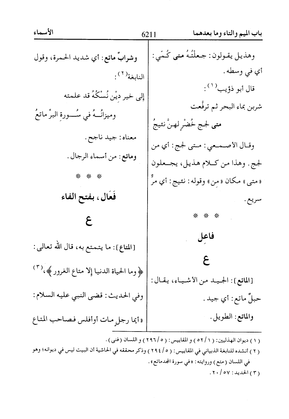 (2) أنشده للنابغة الذبياني في المقاييس: (5/ 294) وذكر محققه في الحاشية أن البيت ليس في ديوانه؛ وهو في اللسان (متع) وروايته: