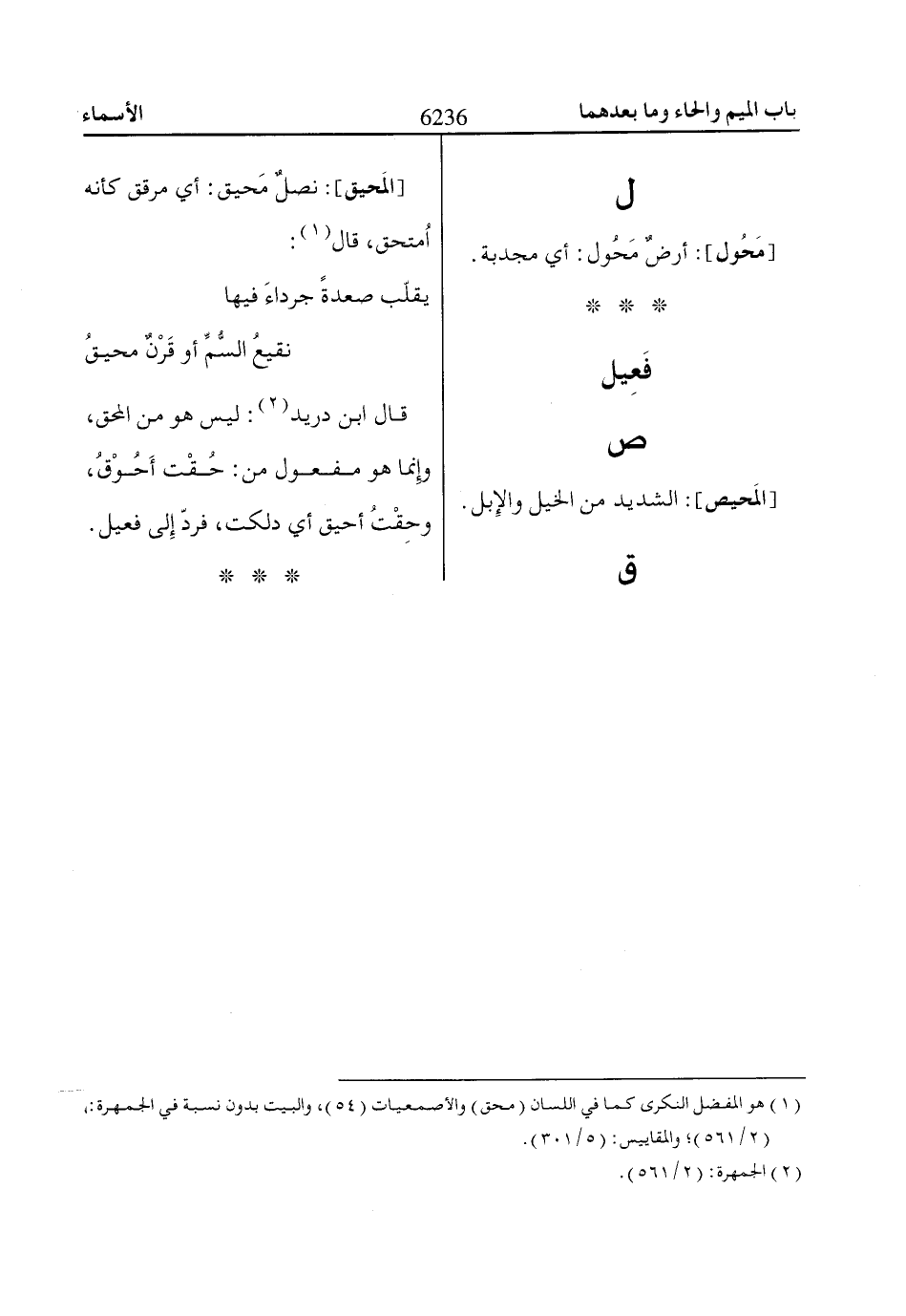 [المَحيق]: نصلٌ مَحيق: أي مرقق كأنه امتحق، قال «1»: