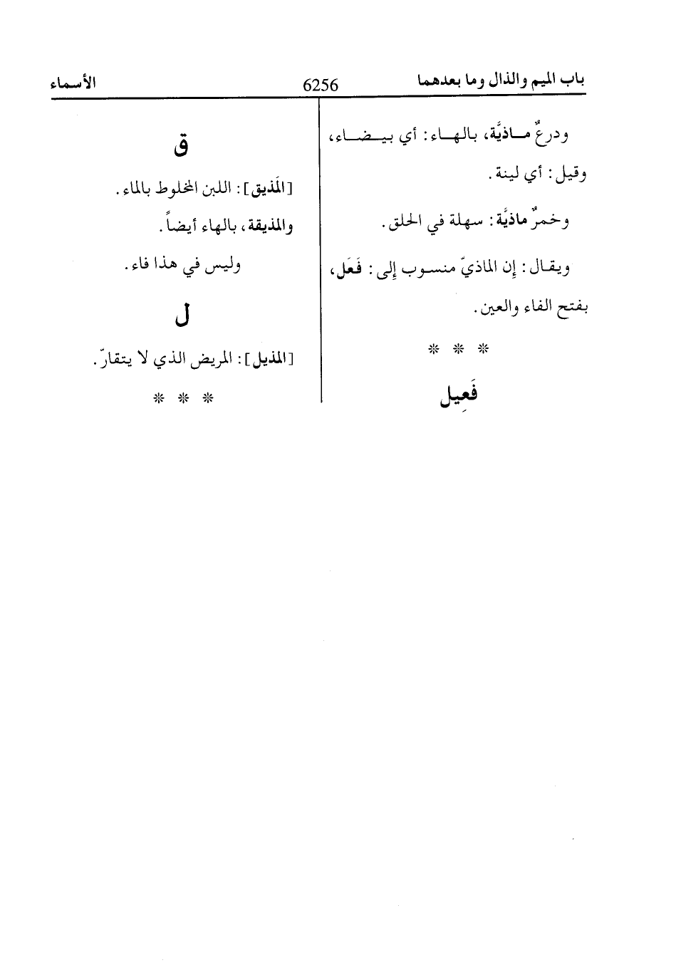 ويقال: إِن الماذيّ منسوب إِلى: فَعَل، بفتح الفاء والعين.