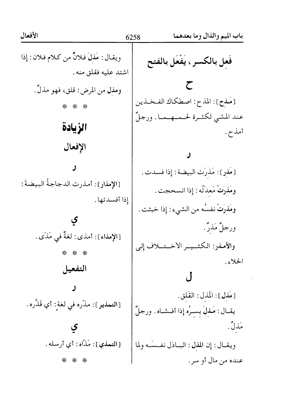 يقال: مَذِلَ بِسِرِّه إِذا أفشاه. ورجلٌ مَذِلٌ.