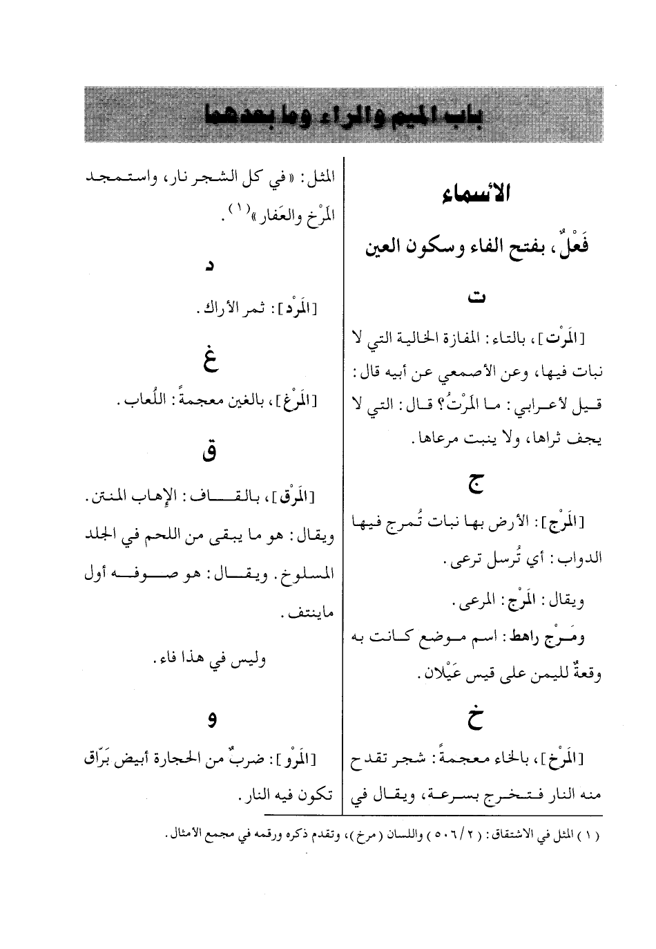 (1) المثل في الاشتقاق: (2/ 506) واللسان (مرخ)، وتقدم ذكره ورقمه في مجمع الأمثال.