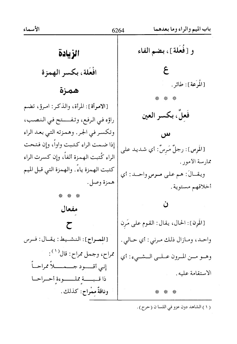 [المِمراح]: النشيط: يقال: فرس ممراح، وجمل ممراح: قال «1»: