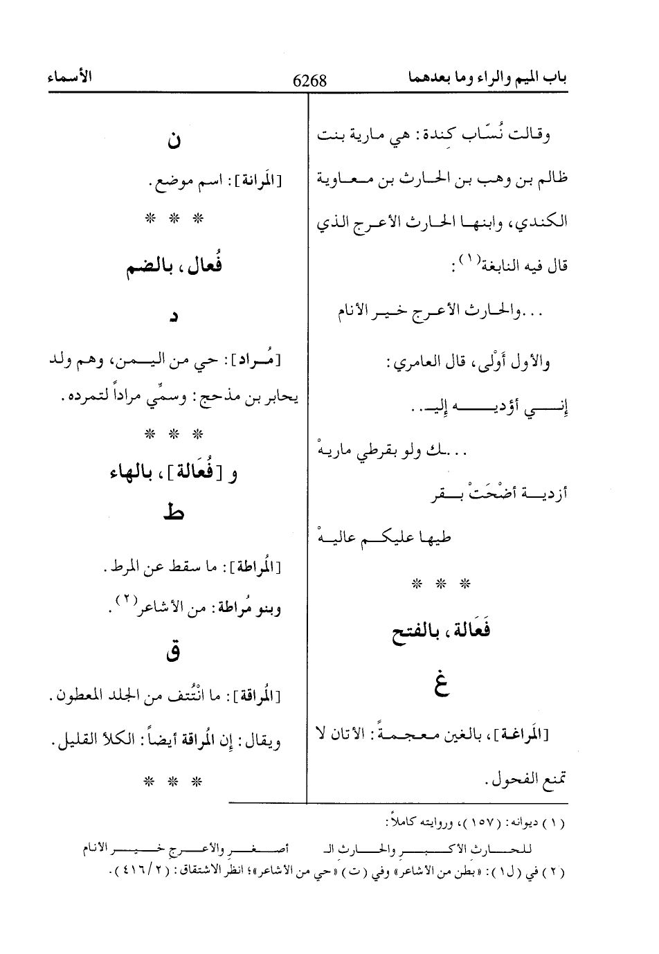 [مُراد]: حي من اليمن، وهم ولد يحابر بن مذحج: وسمِّي مراداً لتمرده.