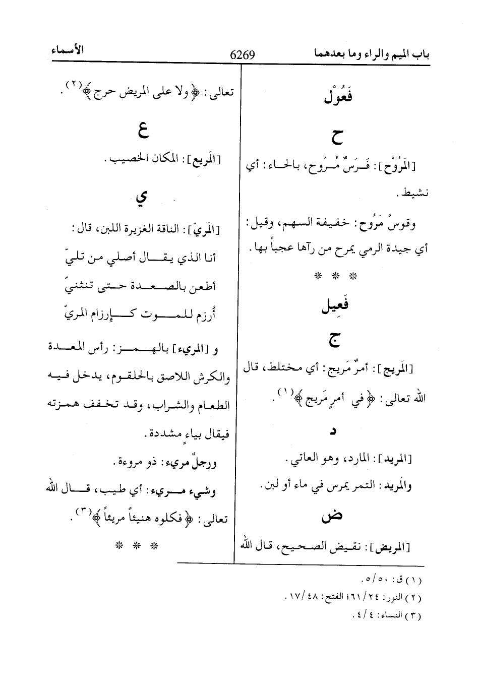 [المريض]: نقيض الصحيح، قال اللّاه تعالى: وَلاا عَلَى الْمَرِيضِ حَرَجٌ* «2».