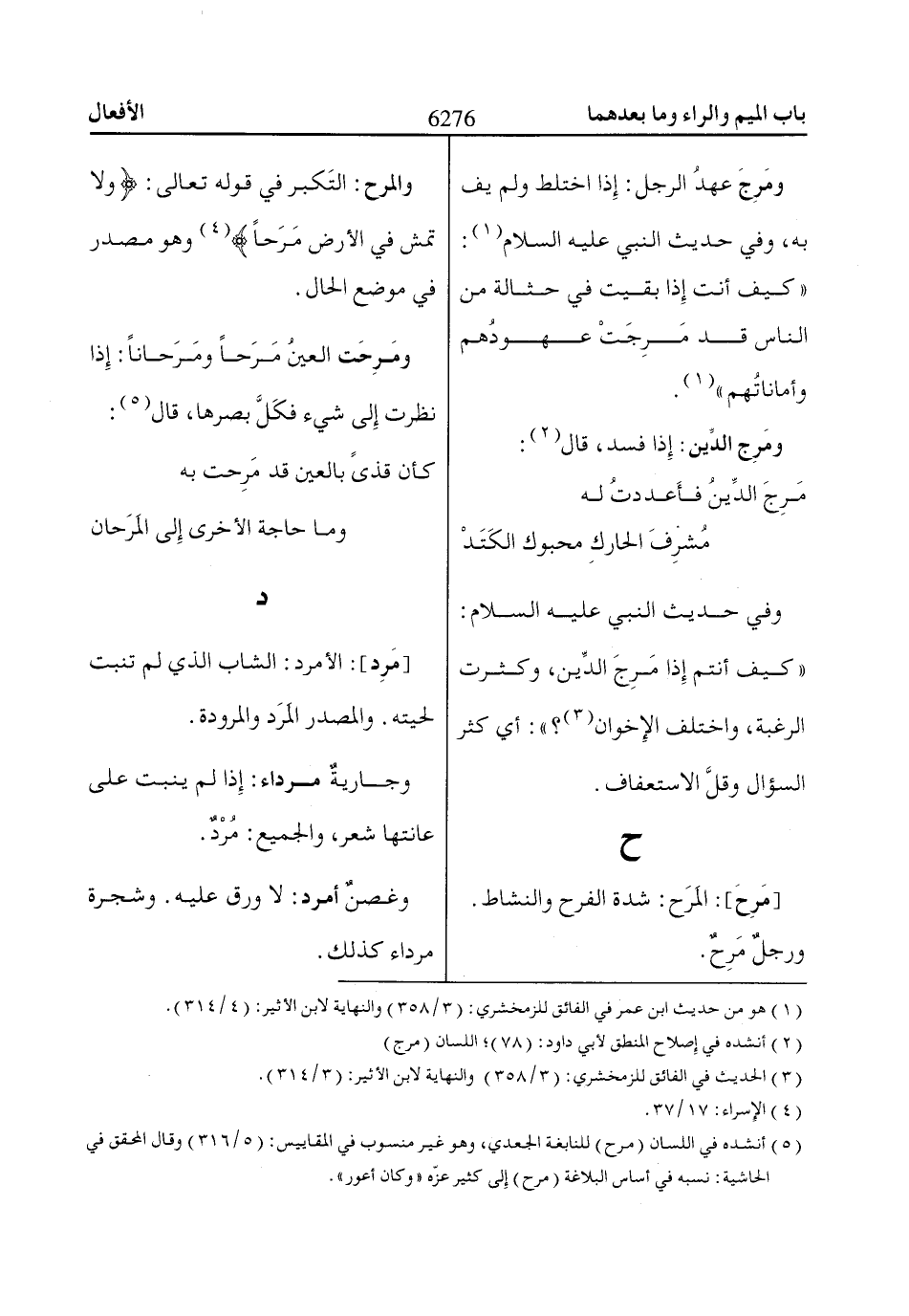 (5) أنشده في اللسان (مرح) للنابغة الجعدي، وهو غير منسوب في المقاييس: (5/ 316) وقال المحقق في الحاشية: نسبه في أساس البلاغة (مرح) إِلى كثير عزّه «وكان أعور».