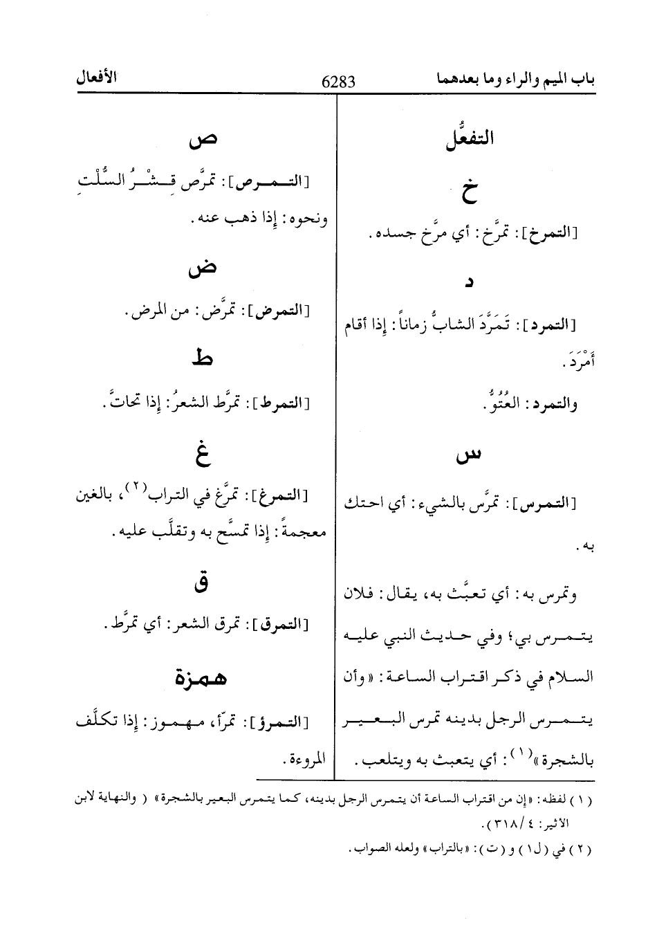 (1) لفظه: «إِن من اقتراب الساعة أن يتمرس الرجل بدينه، كما يتمرس البعير بالشجرة» (والنهاية لابن الأثير: 4/ 318).