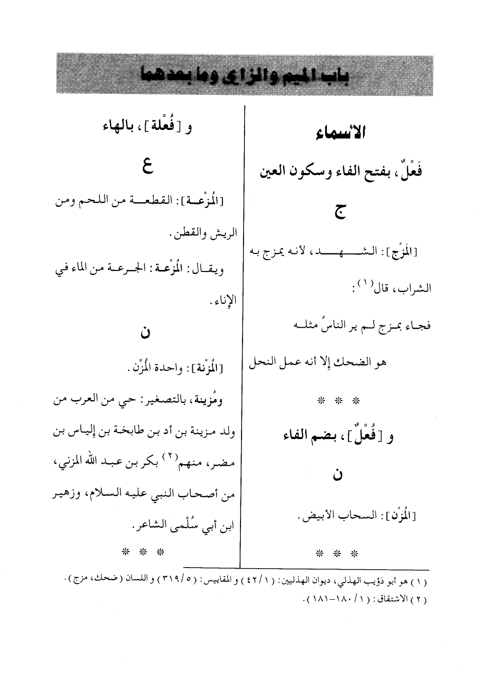[المَزْج]: الشهد، لأنه يمزج به الشراب، قال «1»: