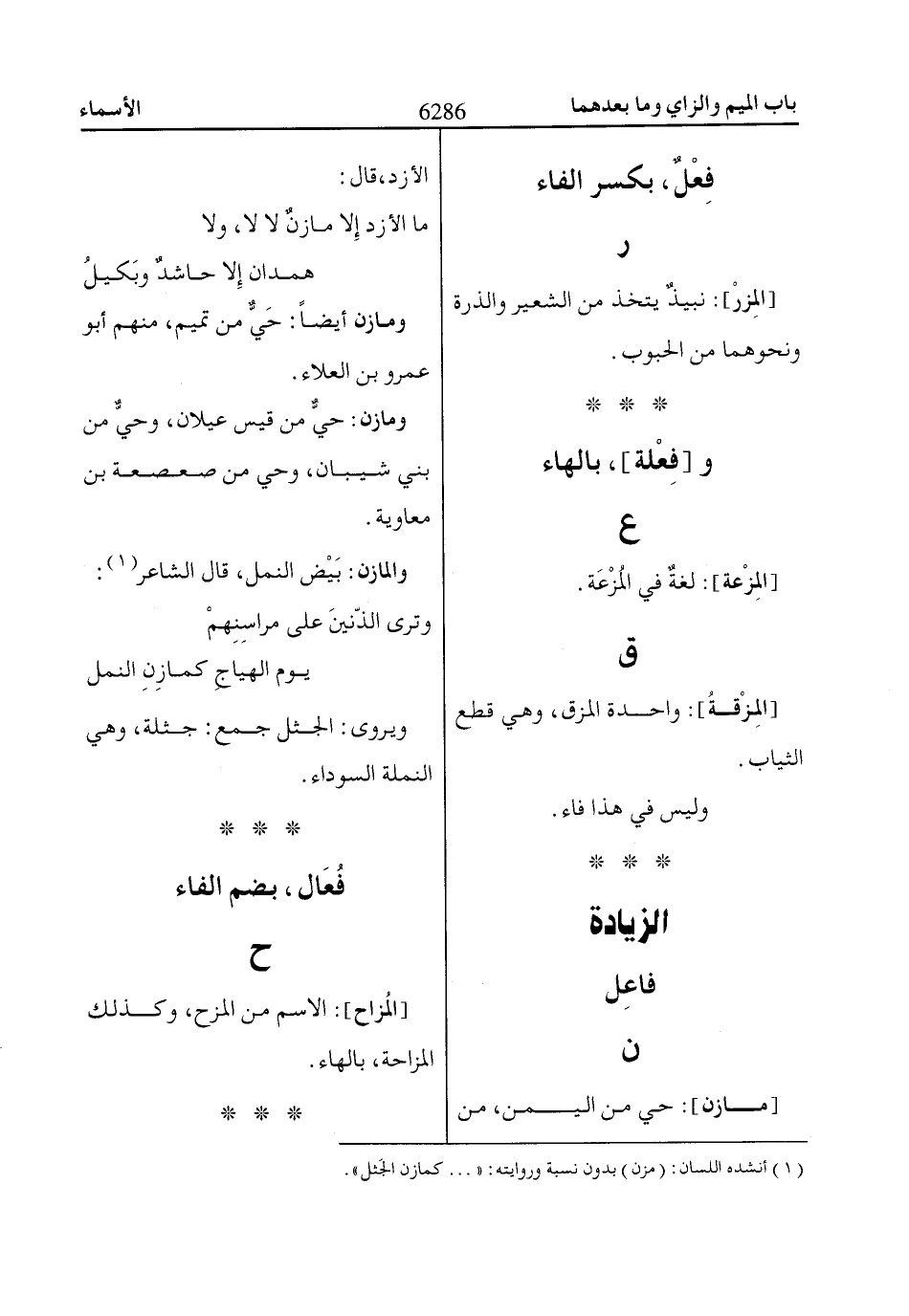 والمازن: بَيْض النمل، قال الشاعر «1»: