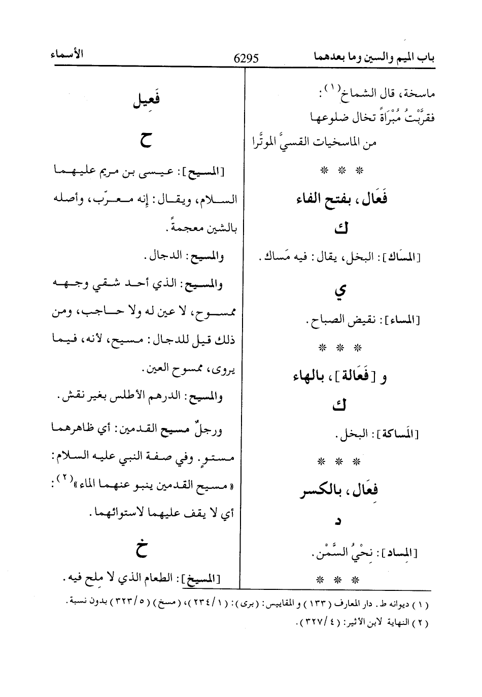 [المسيح]: عيسى بن مريم عليهما السلام، ويقال: إِنه معرّب، وأصله بالشين معجمةً.