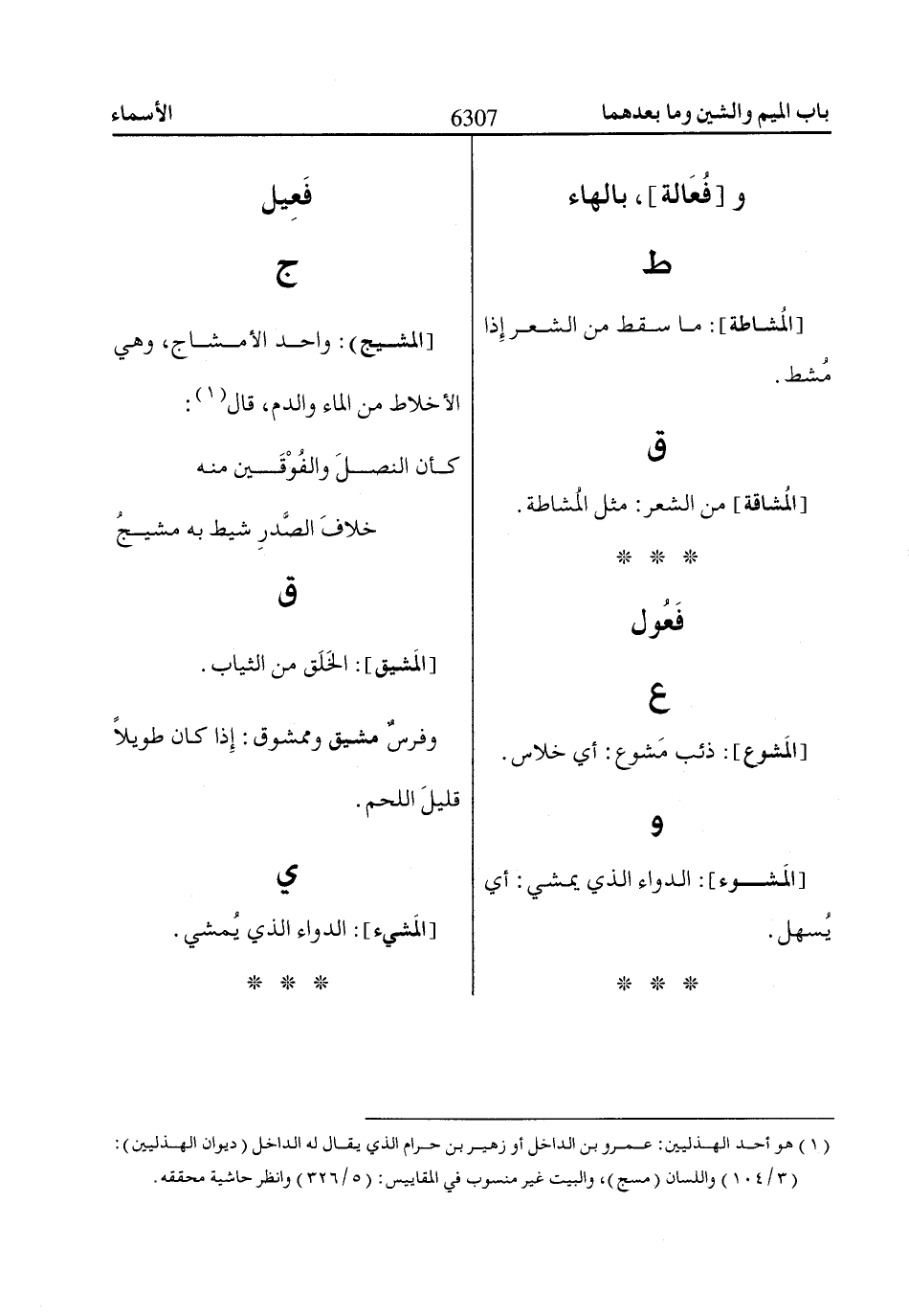 و [المَشوء]: الدواء الذي يمشي: أي يُسهل.