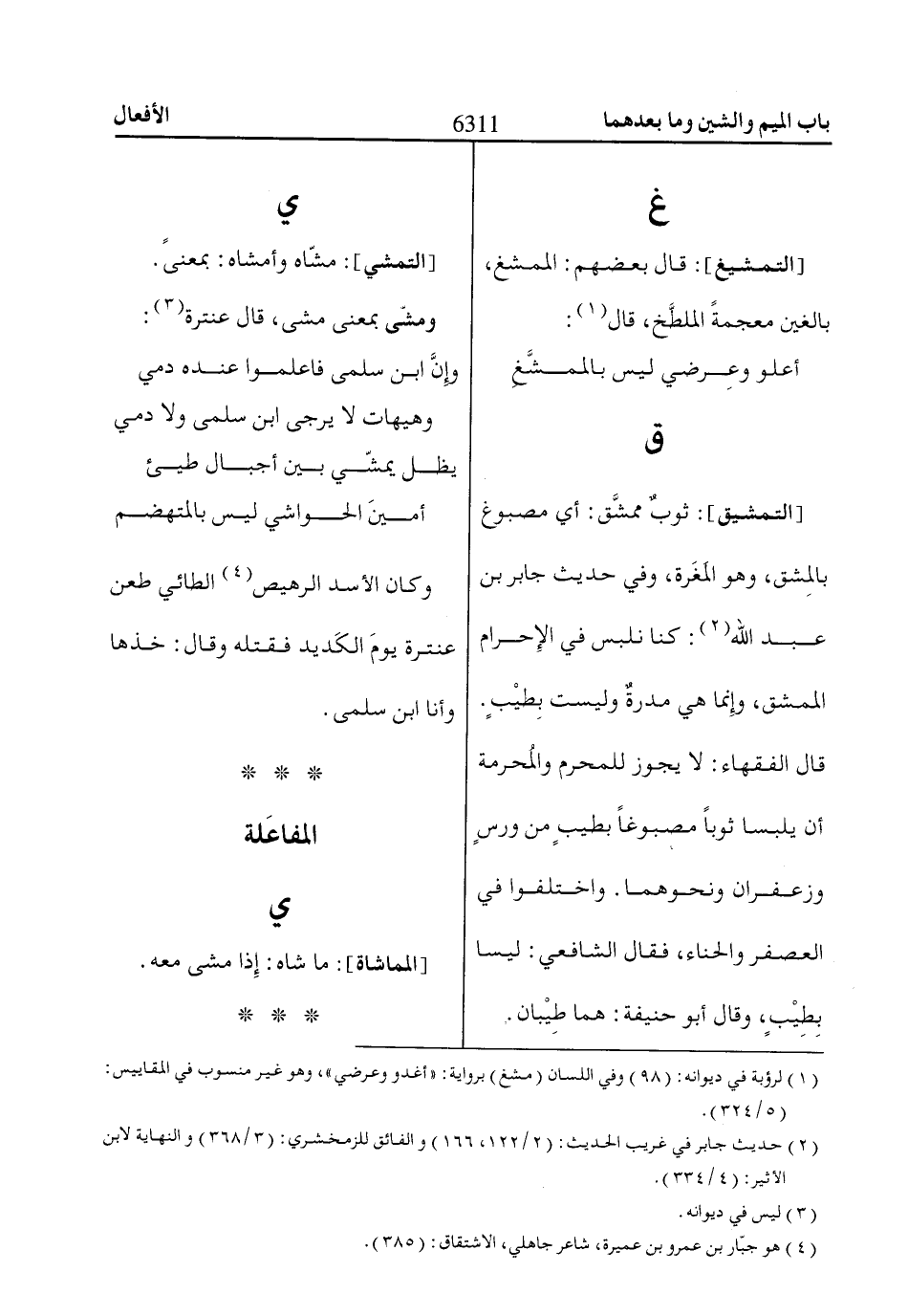 (1) لرؤبة في ديوانه: (98) وفي اللسان (مشغ) برواية: