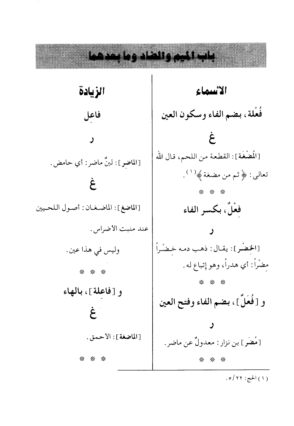 [المُضْغَة]: القطعة من اللحم، قال اللّاه تعالى: ثُمَّ مِنْ مُضْغَةٍ «1».