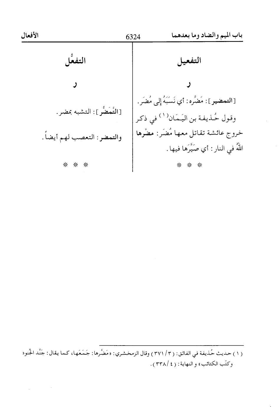 (1) حديث حُذيفة في الفائق: (3/ 371) وقال الزمخشري: «مَضَّرها: جَمَعَها، كما يقال: جَنَّد الجُنود وكتّب الكتائب» والنهاية: (4/ 338).
