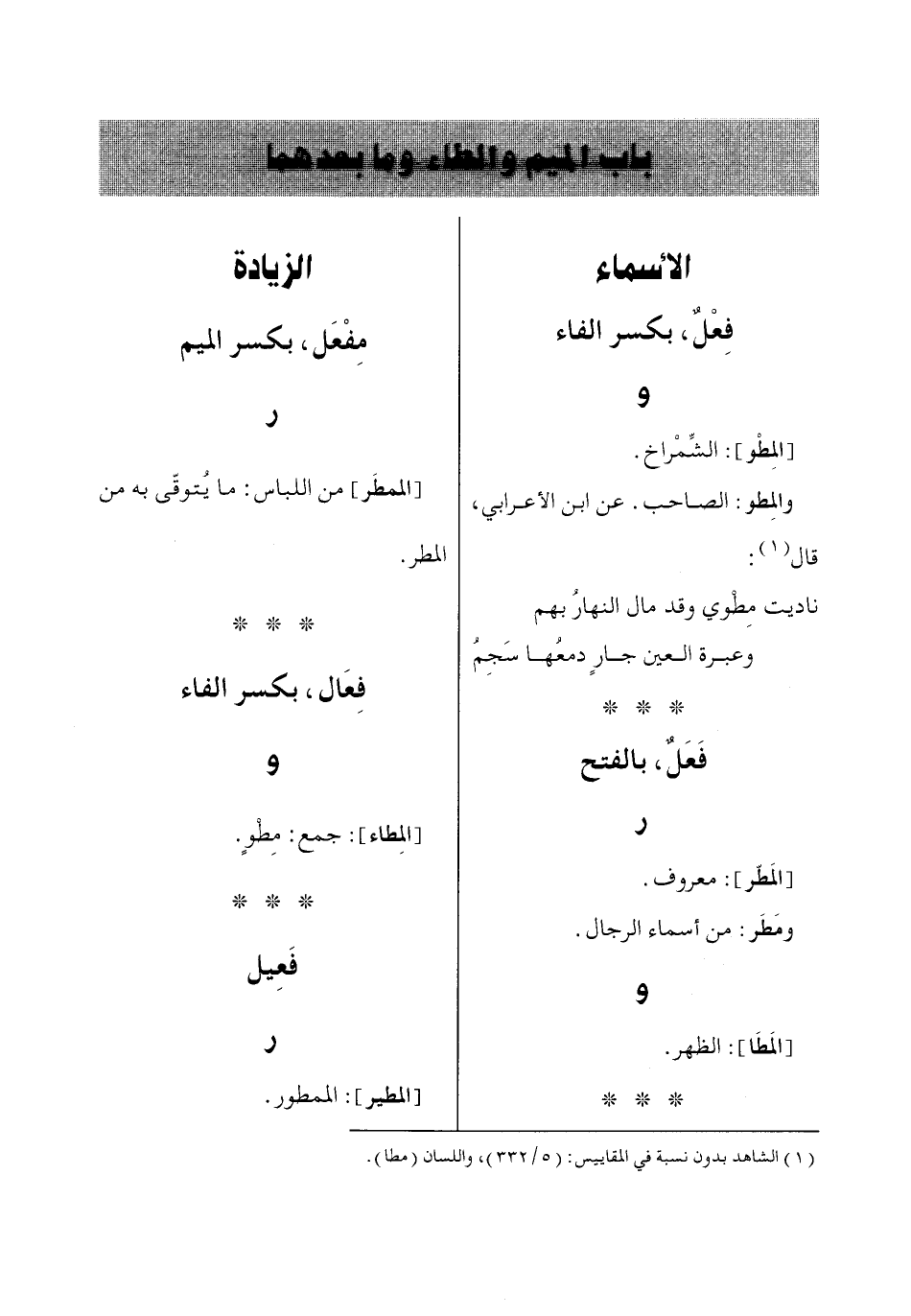 (1) الشاهد بدون نسبة في المقاييس: (5/ 332)، واللسان (مطا).