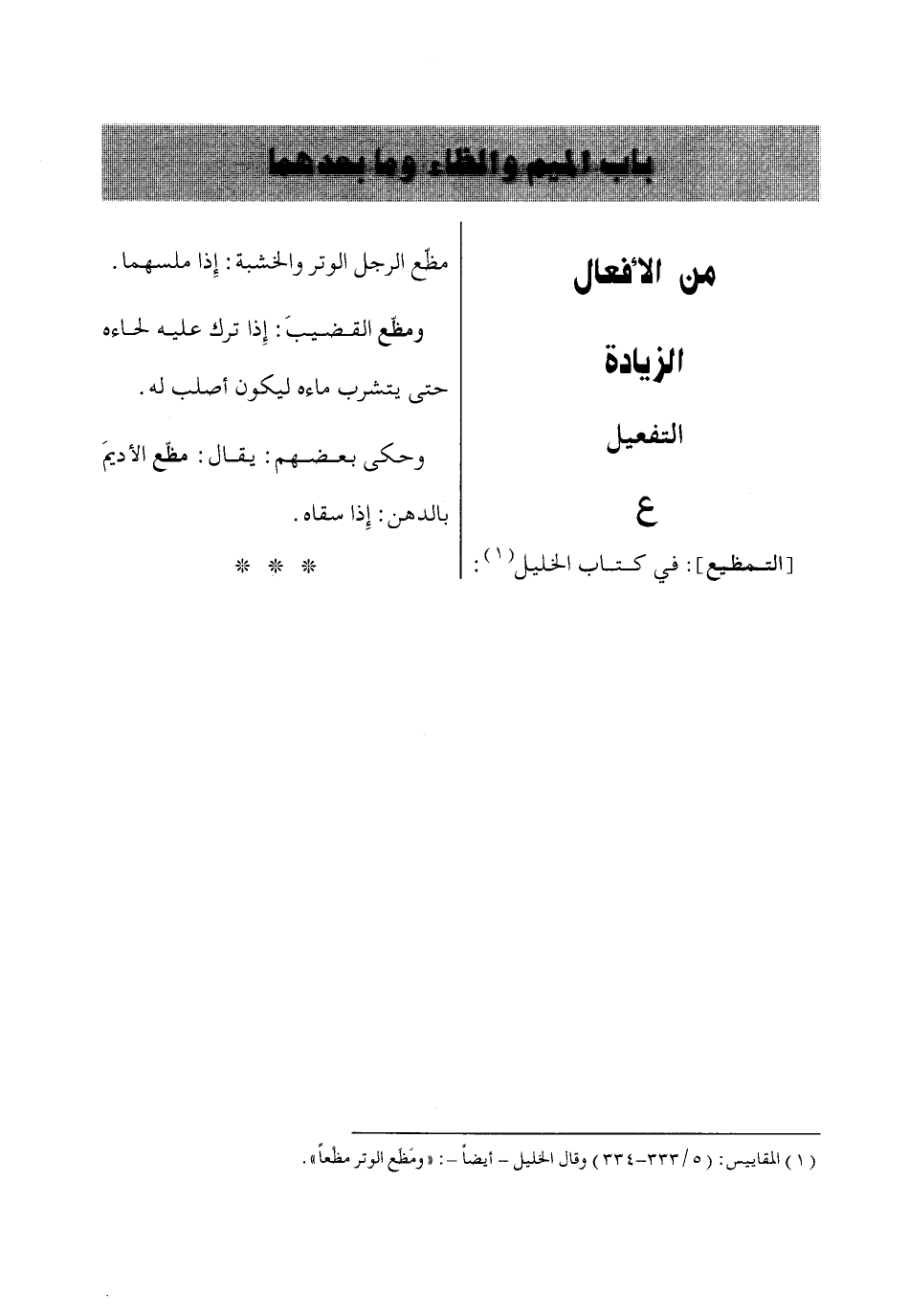(1) المقاييس: (5/ 333 - 334) وقال الخليل- أيضاً-: «ومَظَع الوتر مظْعاً».
