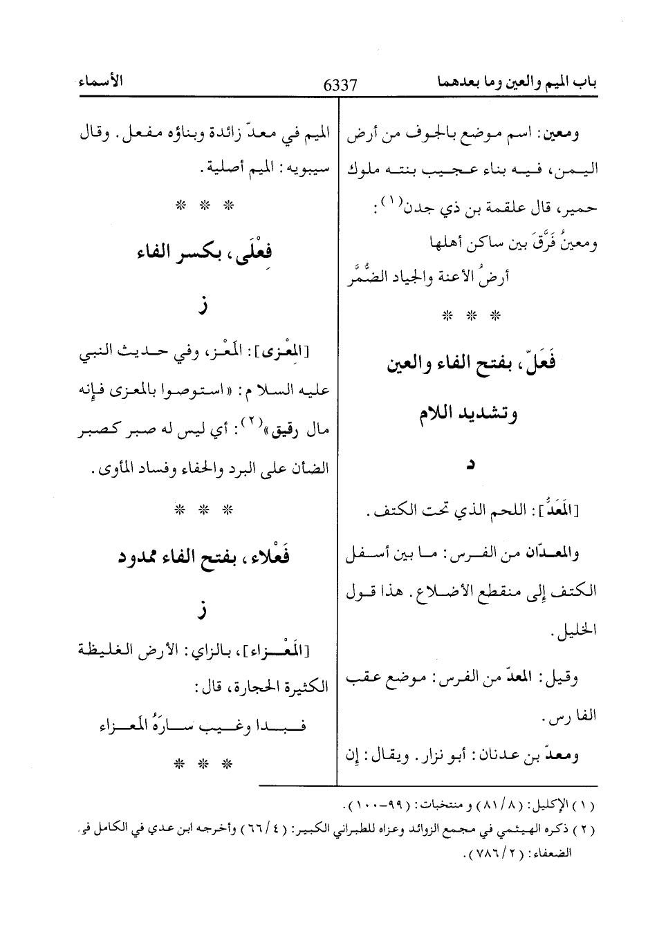 [المَعْزاء]، بالزاي: الأرض الغليظة الكثيرة الحجارة، قال: