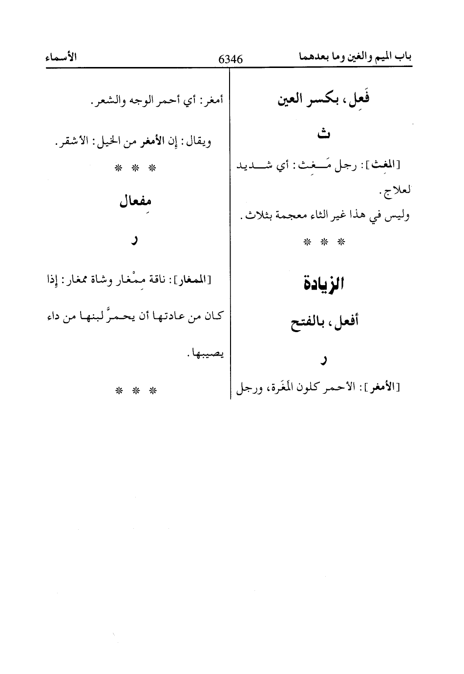 [الأمغر]: الأحمر كلون المَغَرة، ورجل أمغر: أي أحمر الوجه والشعر.