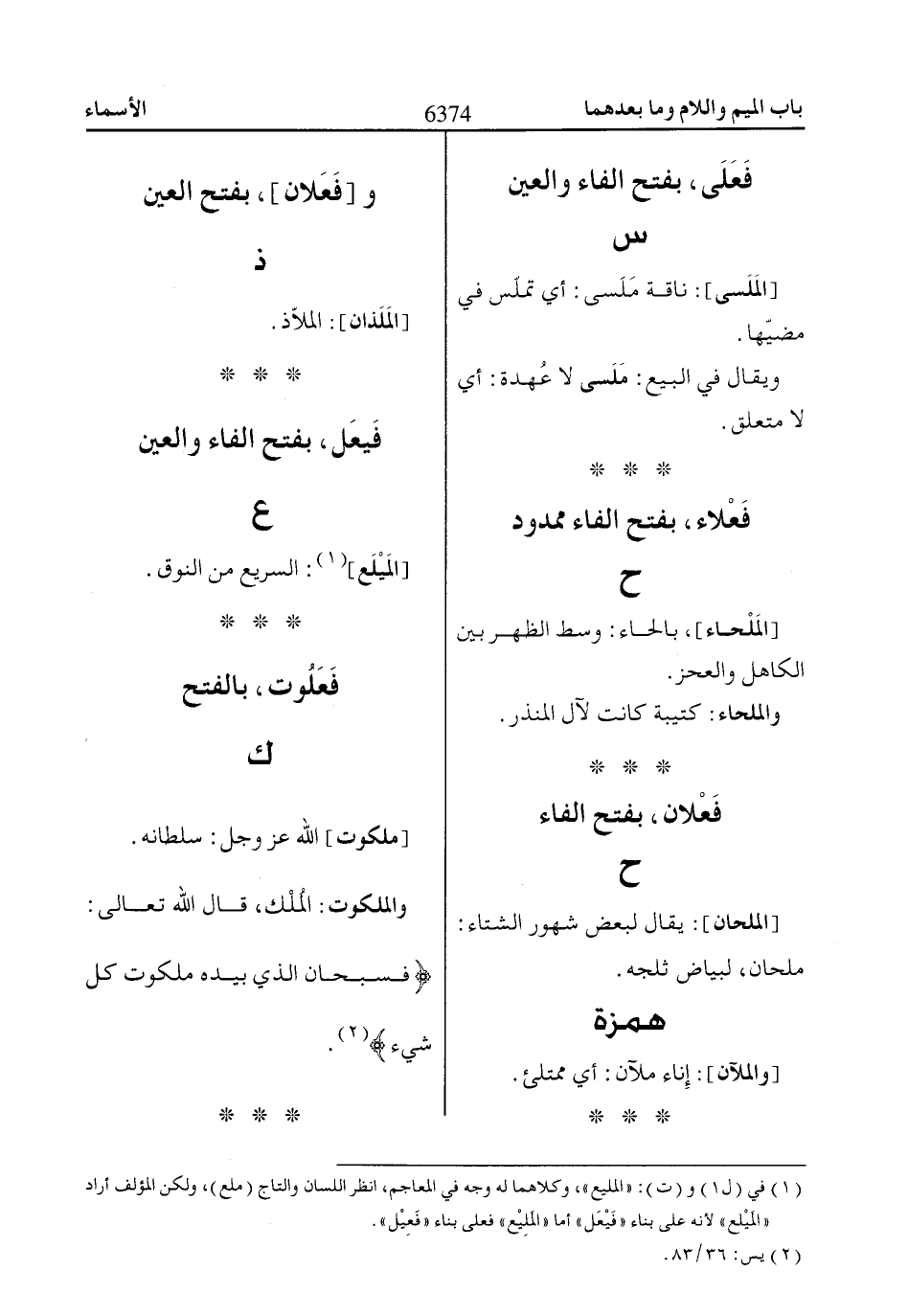 (1) في (ل 1) و (ت): «المليع»، وكلاهما له وجه في المعاجم، انظر اللسان والتاج (ملع)، ولكن المؤلف أراد «المَيْلع» لأنه على بناء «فَيْعَل» أما «المَلِيْع» فعلى بناء «فَعِيْل».