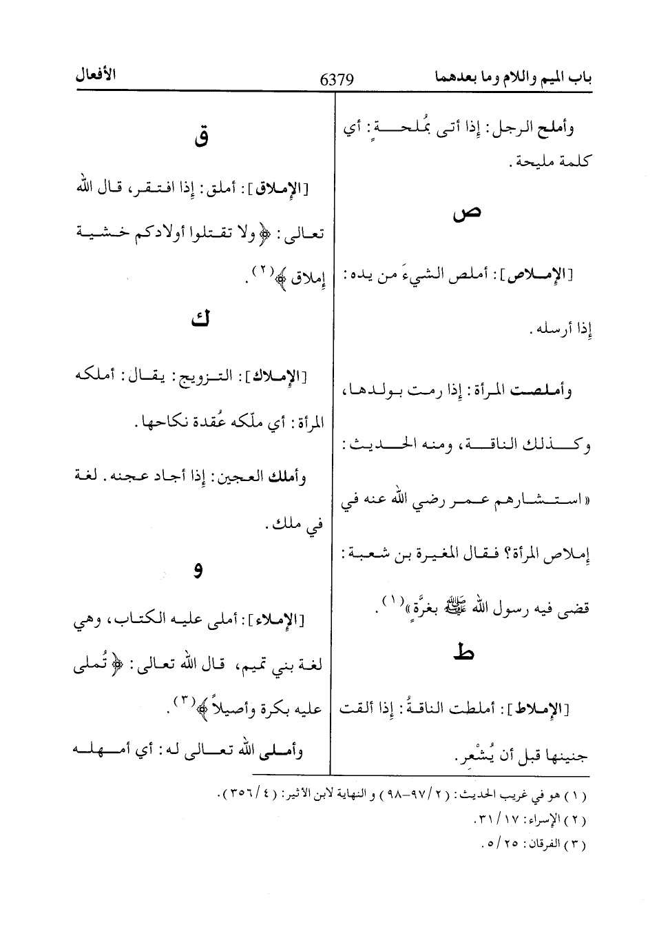 [الإِملاق]: أملق: إِذا افتقر، قال اللّاه تعالى: وَلاا تَقْتُلُوا أَوْلاادَكُمْ خَشْيَةَ إِمْلااقٍ «2».
