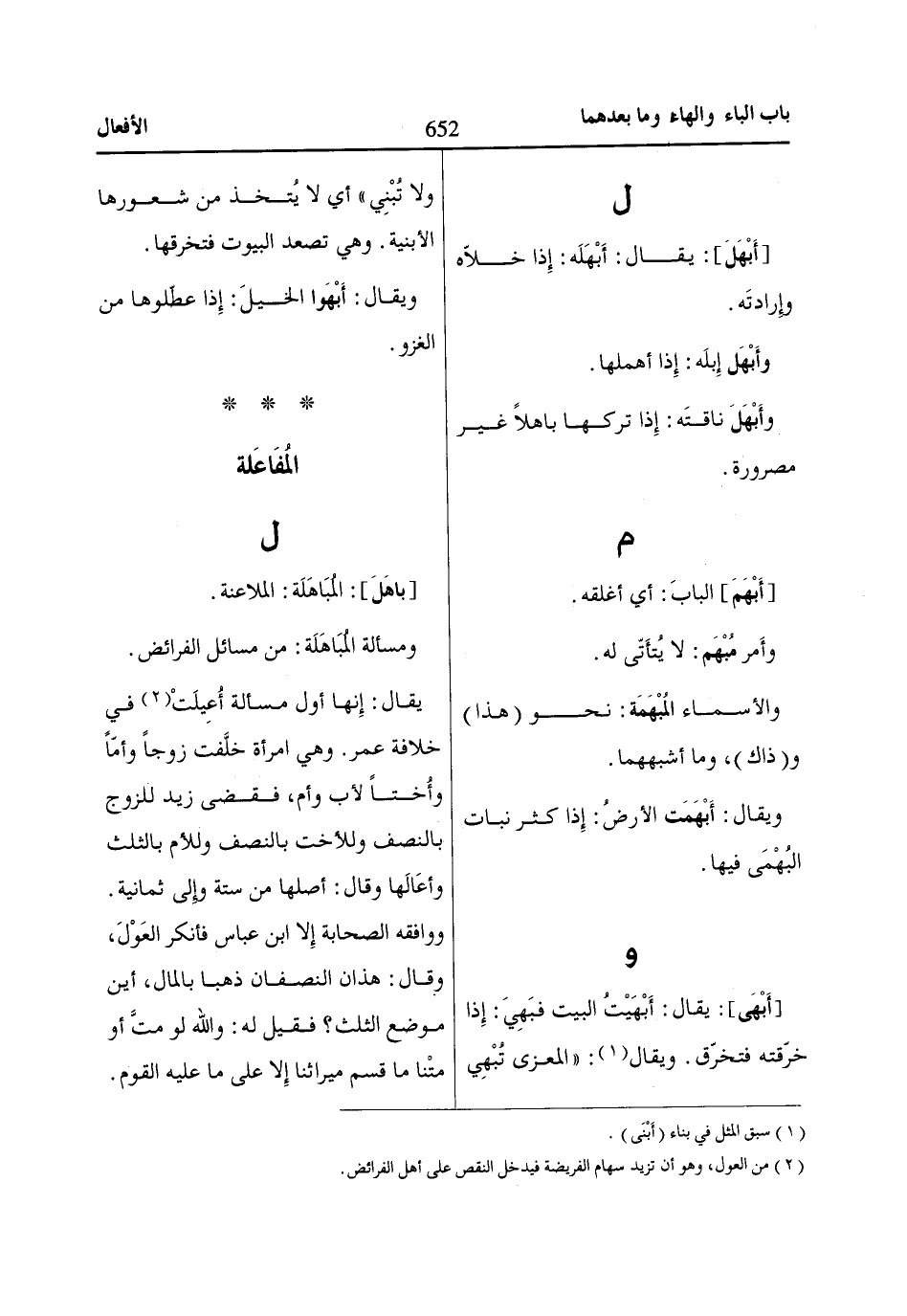 [باهَلَ]: المُبَاهَلَة: الملاعنة.