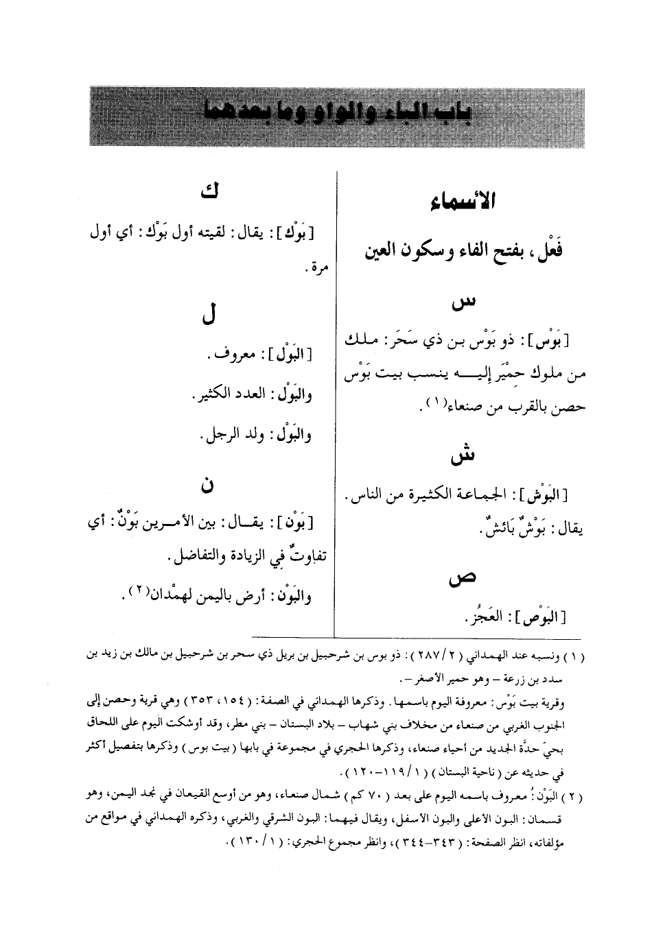 باب الباء والواو وما بعدهما