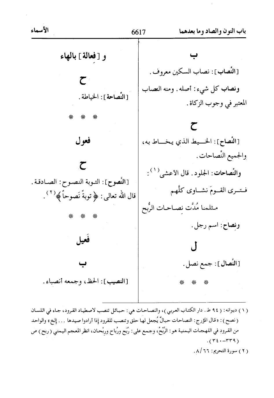 (1) ديوانه: (94 ط. دار الكتاب العربي)، والنصاحات هي: حبائل تنصب لاصطياد القرود، جاء في اللسان (نصح): «قال المؤرج: النصاحات حبالٌ يُجعل لها حلق وتنصب للقرود إِذا أرادوا صيدها ... إِلخ» والواحد من القرود في اللهجات اليمنية هو: الرَّبْحُ، وجمع على: رُبَح ورُباح ورِبْحان، انظر المعجم اليمني (ربح) ص (339 - 340).