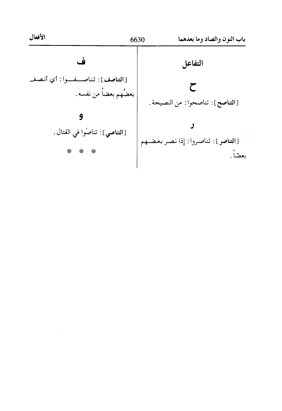 [التناصر]: تناصروا: إِذا نصر بعضهم بعضاً.