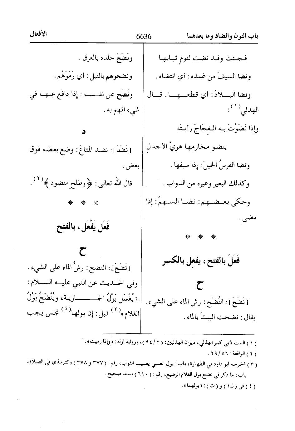 [نَضَحَ]: النضح: رشُّ الماء على الشيء.