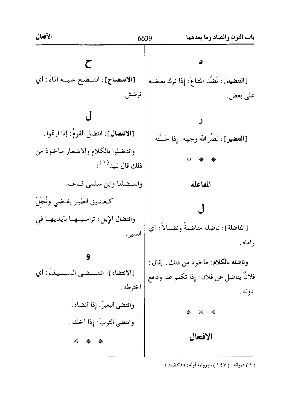 وانتضلوا بالكلام والأشعار مأخوذ من ذلك قال لبيد «1»:
